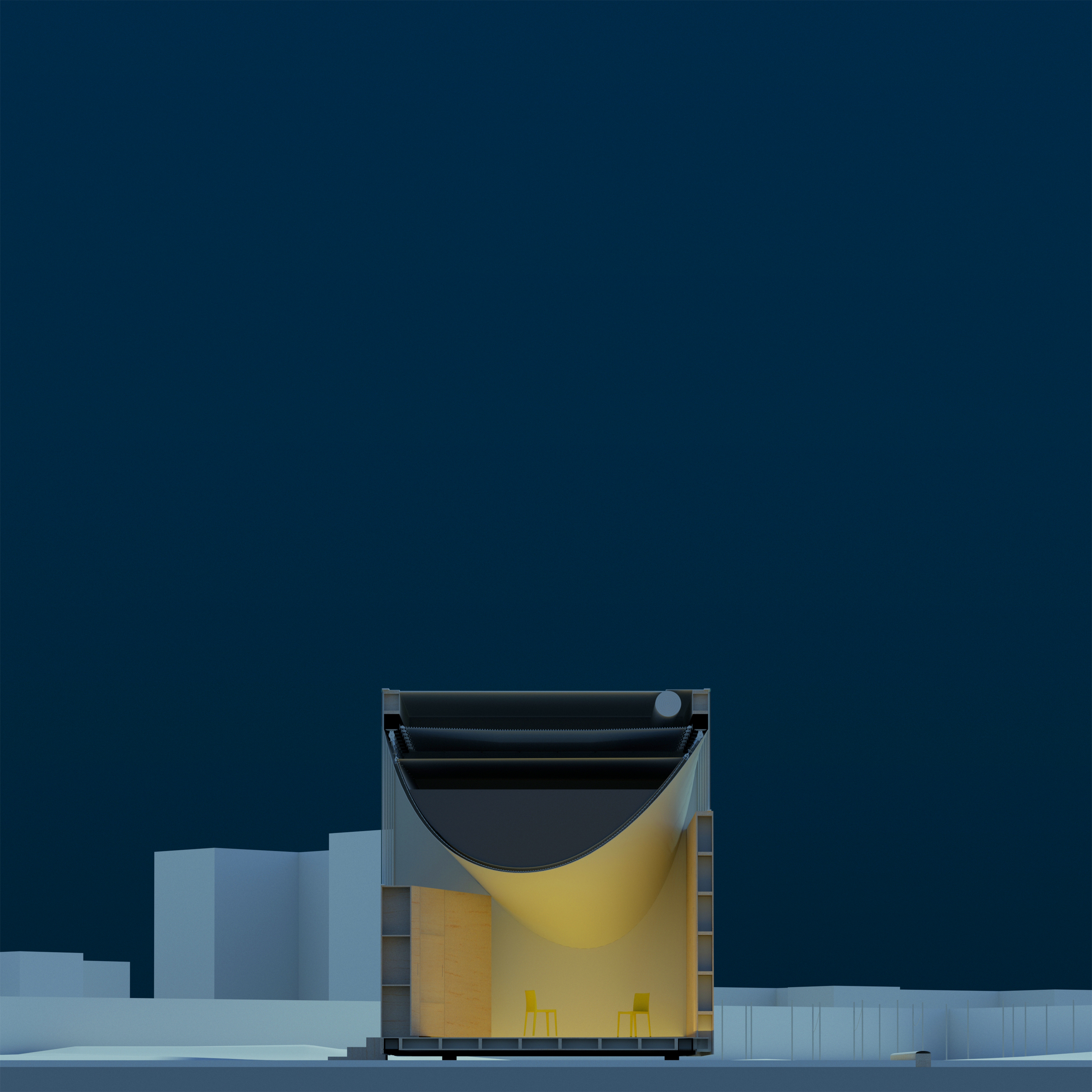With over 20,000 rooftop water tanks across New York City, these containers play a critical role for the city's expansive infrastructural systems. The Water Tank Prototype reimagines the relationship between a building's water tank and roofscape. The water tank operates seamlessly across four scales and serves as a new home to threatened community gardens. At the unit scale, the prototype holds water for everyday building use, garden irrigation, and passive/active cooling systems; at the building scale, the garden collects and diverts water back to the prototype, prohibiting detrimental runoff from straining the overloaded sewage system in a rainstorm, favorably serving the City’s Green Infrastructure Plan; at the neighborhood scale, the prototype functions as a community space, flexible and adaptable to the needs of its occupants; and at the city scale, the prototype deploys across the skyline as community garden lots are replaced with ever-increasing development. What results is a symbiotic connection across these four scales in which the prototype harmoniously interacts, never taking only for itself, but engaging with water and social systems to make the city a more cohesive whole.